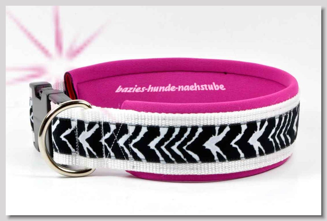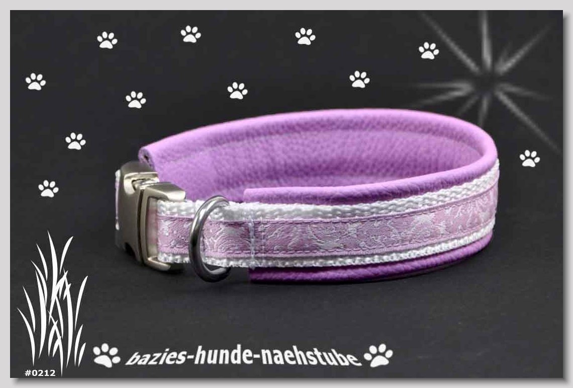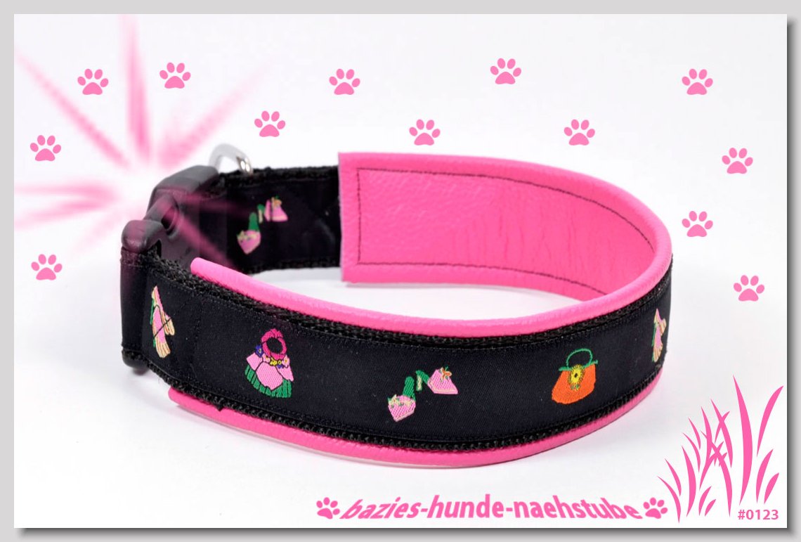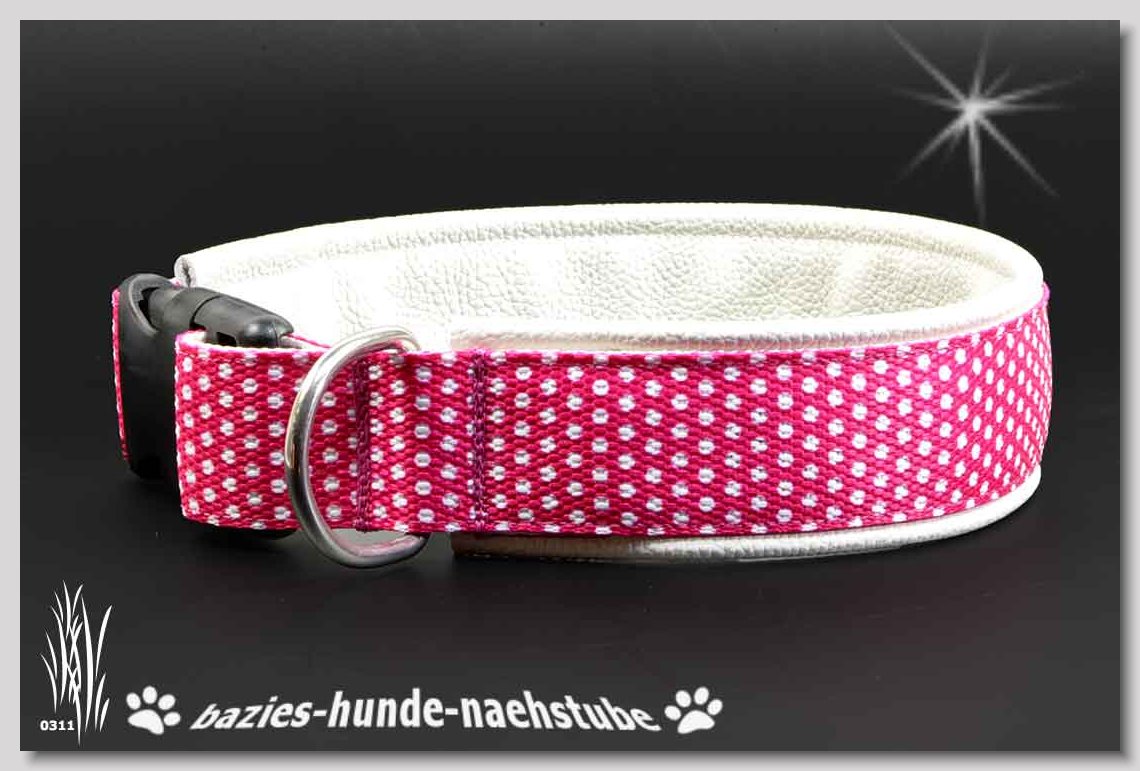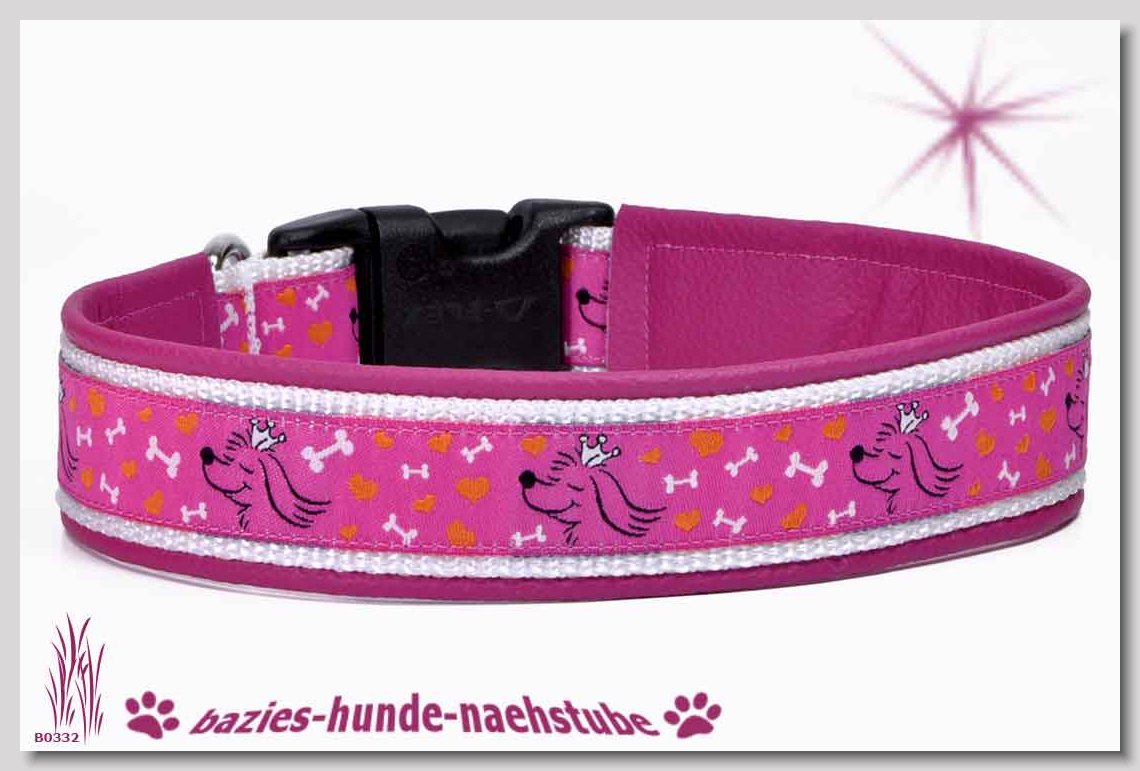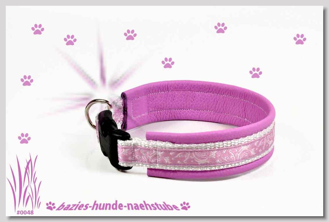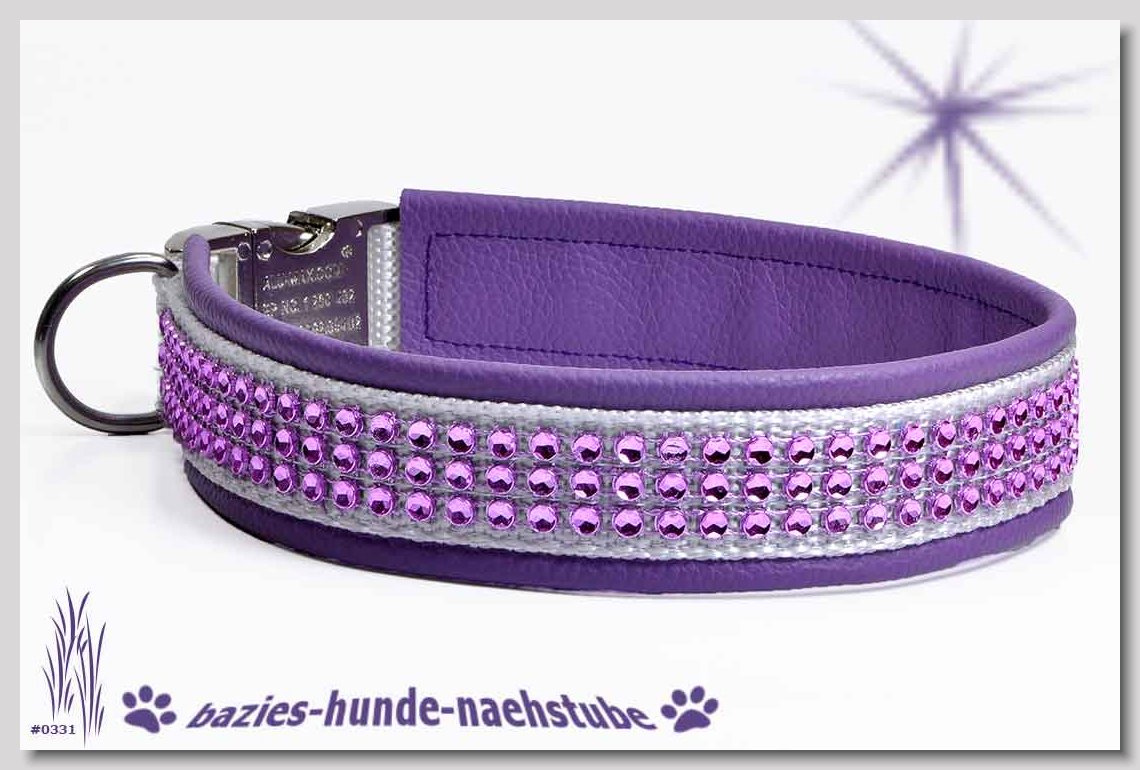 Art.Nr.: S1412-0067 (0331) Halsband im Design "Bling Bling pink" 30mm Gesamtbreite Webband wbx Gurtband gb20-09 weiss Leder L22 lila ALU-Steckschliesser