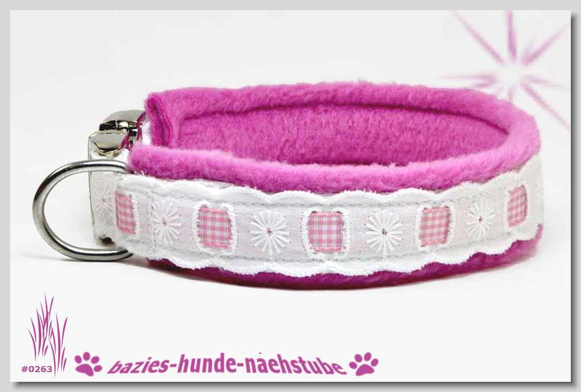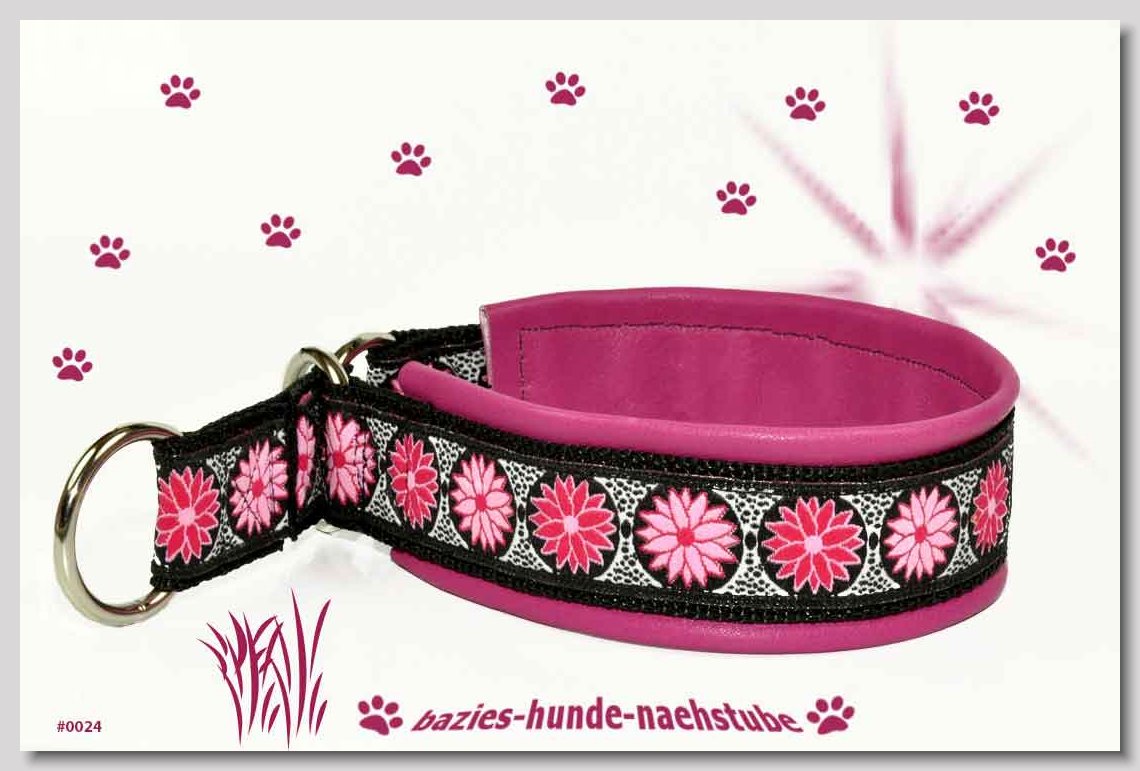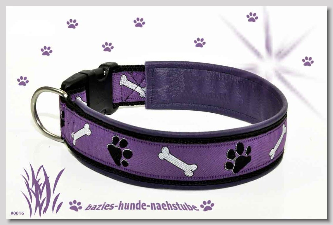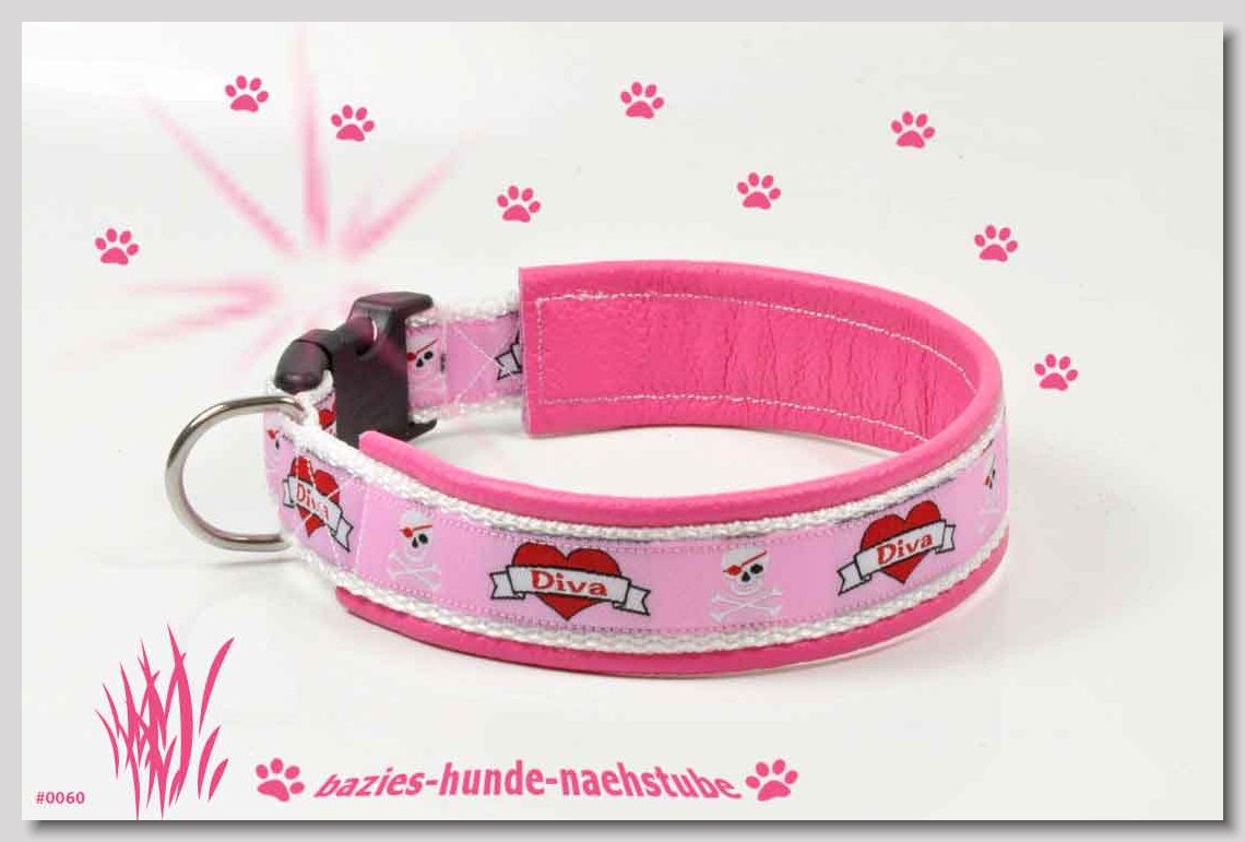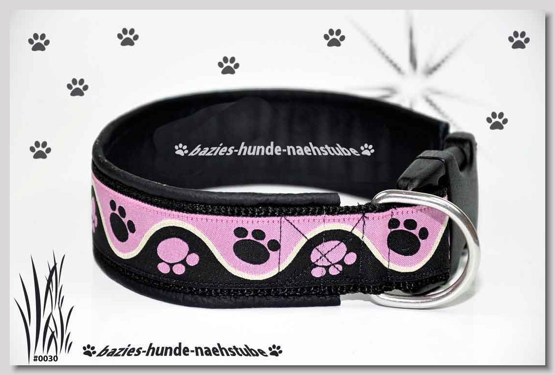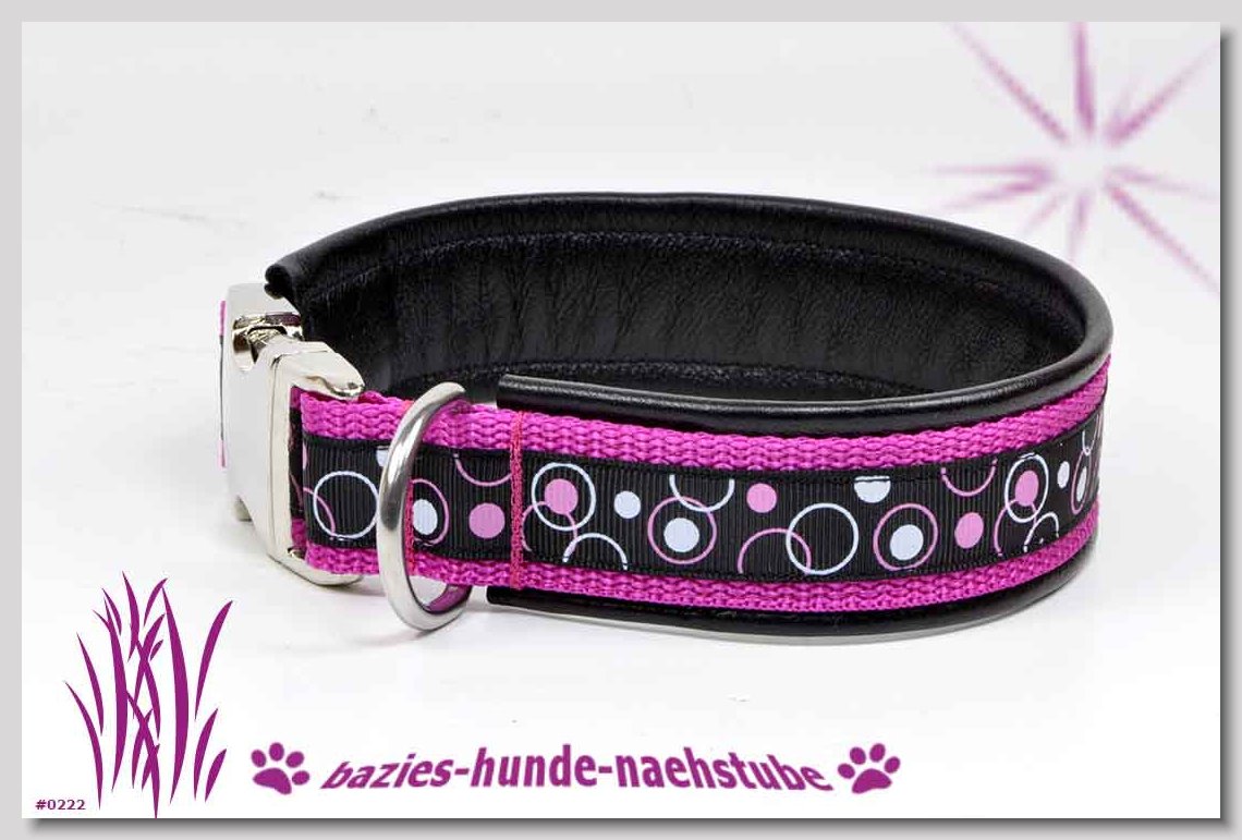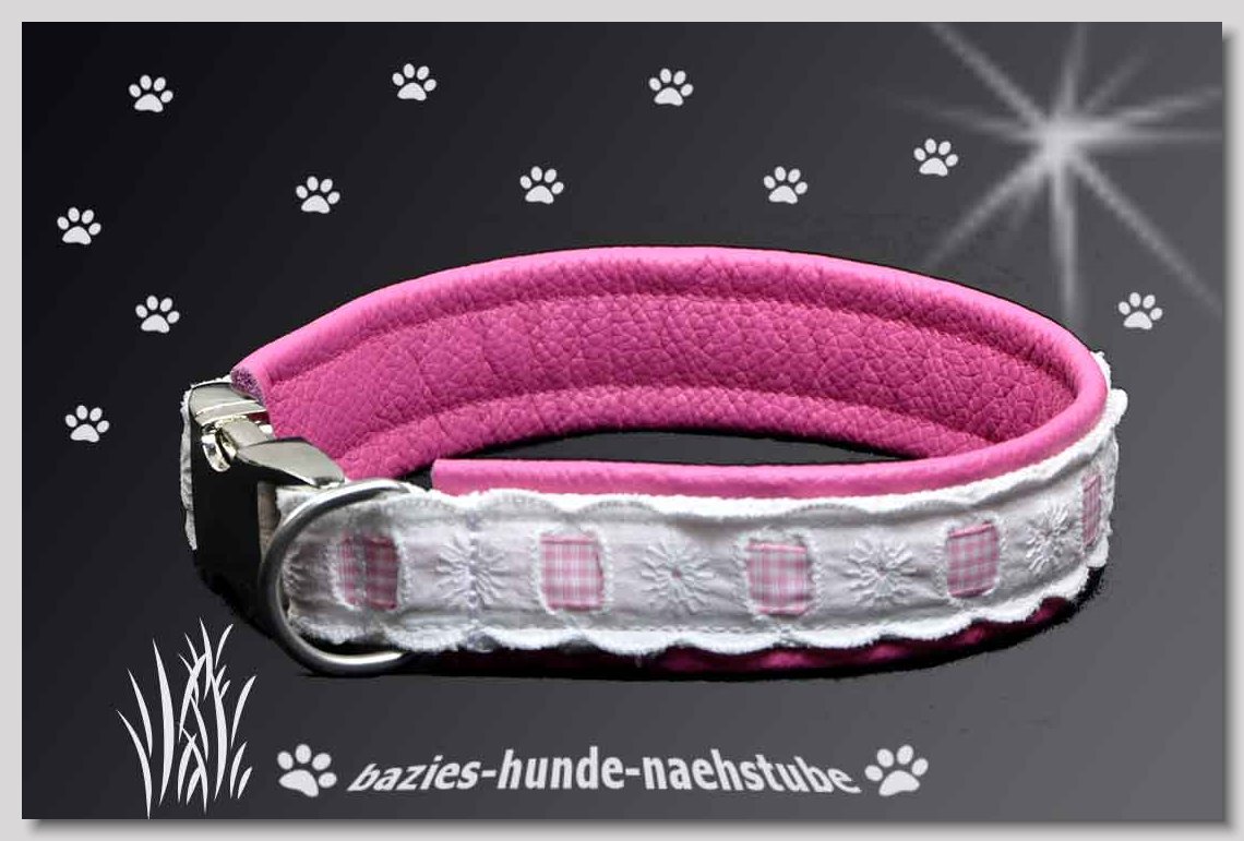 Art.Nr.: S1412-0067 (0331) Halsband im Design "Bling Bling pink" 30mm Gesamtbreite Webband wbx Gurtband gb20-09 weiss Leder L22 lila ALU-Steckschliesser