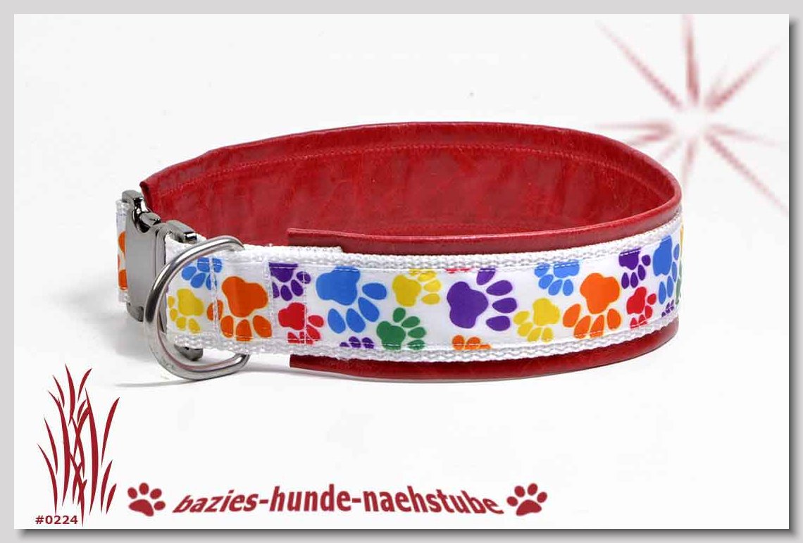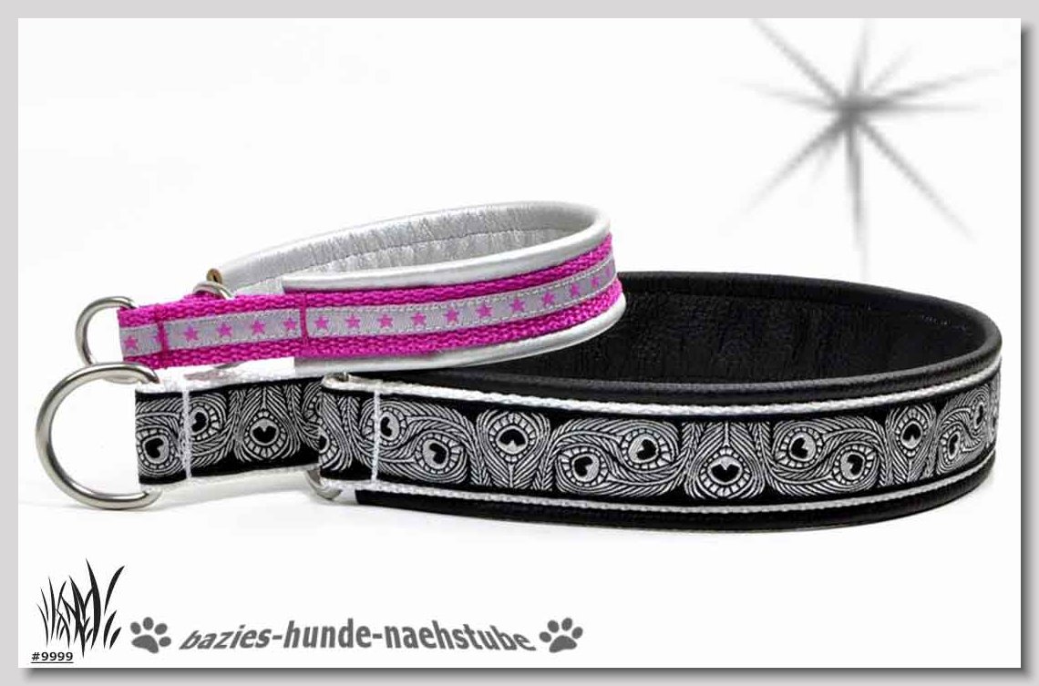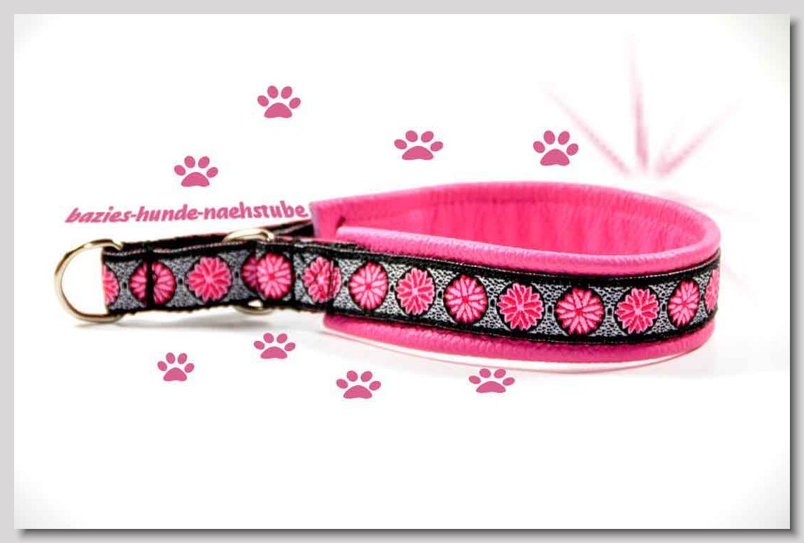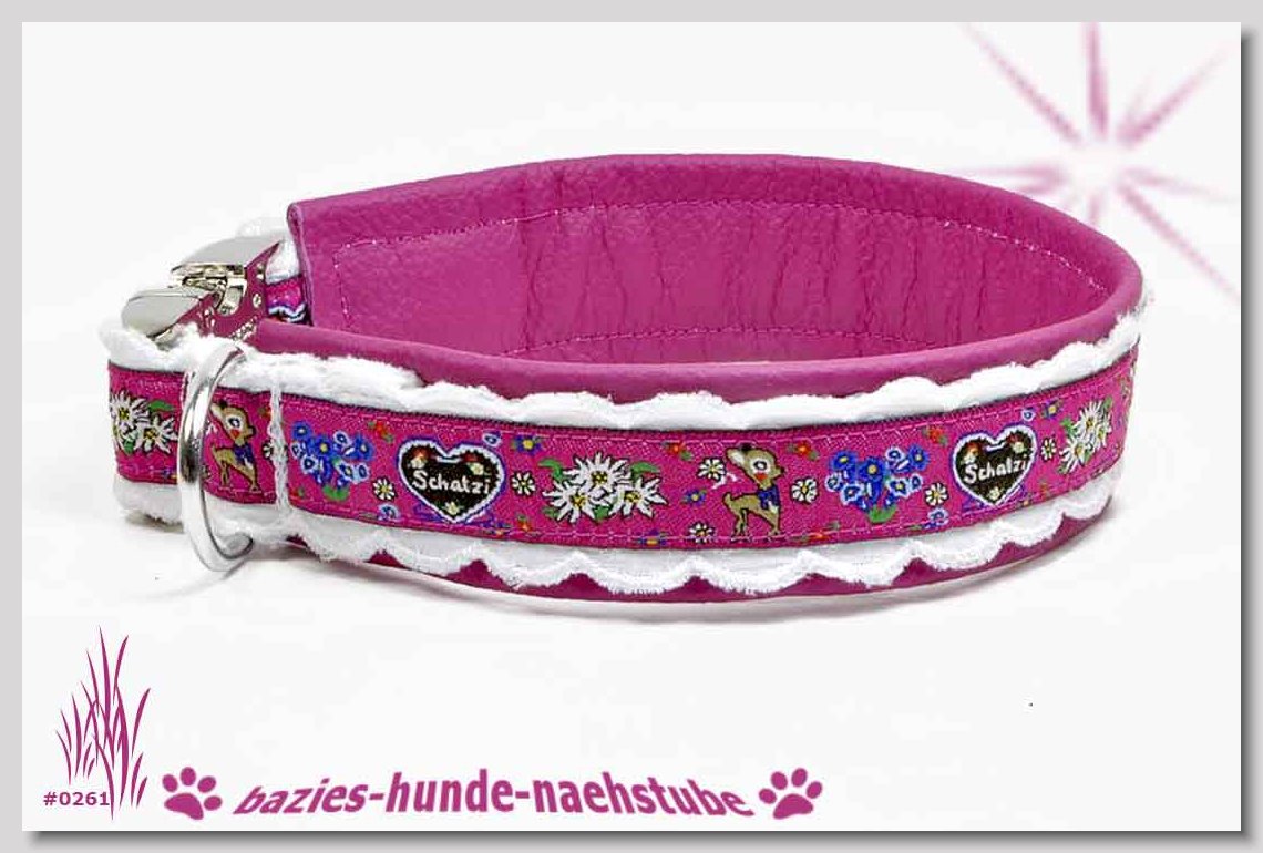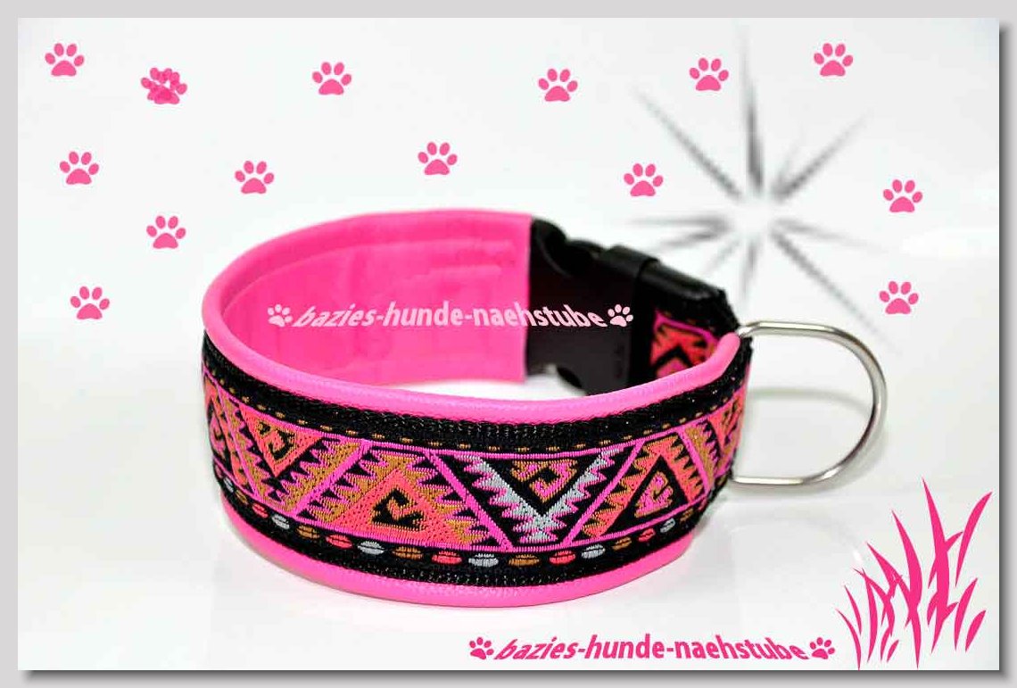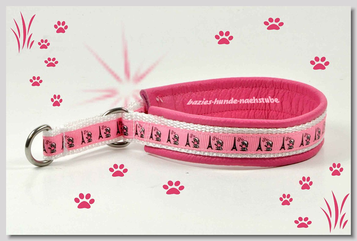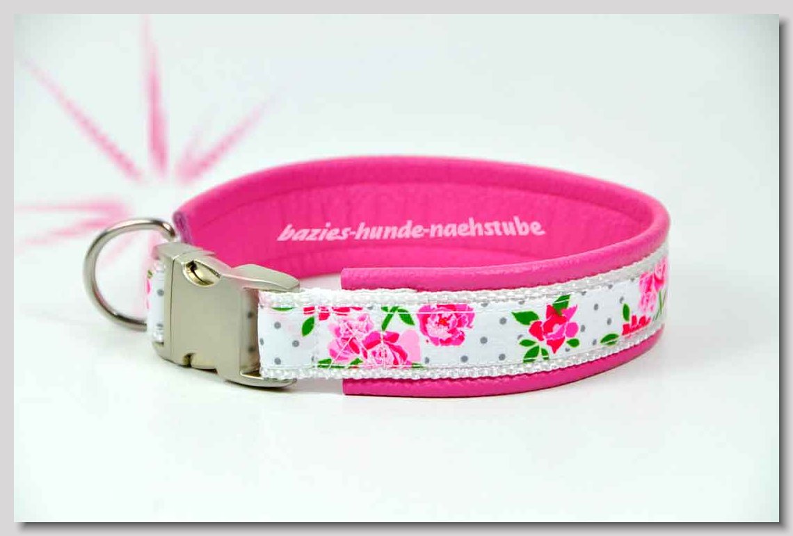 Art.Nr.: S1412-0067 (0331) Halsband im Design "Bling Bling pink" 30mm Gesamtbreite Webband wbx Gurtband gb20-09 weiss Leder L22 lila ALU-Steckschliesser