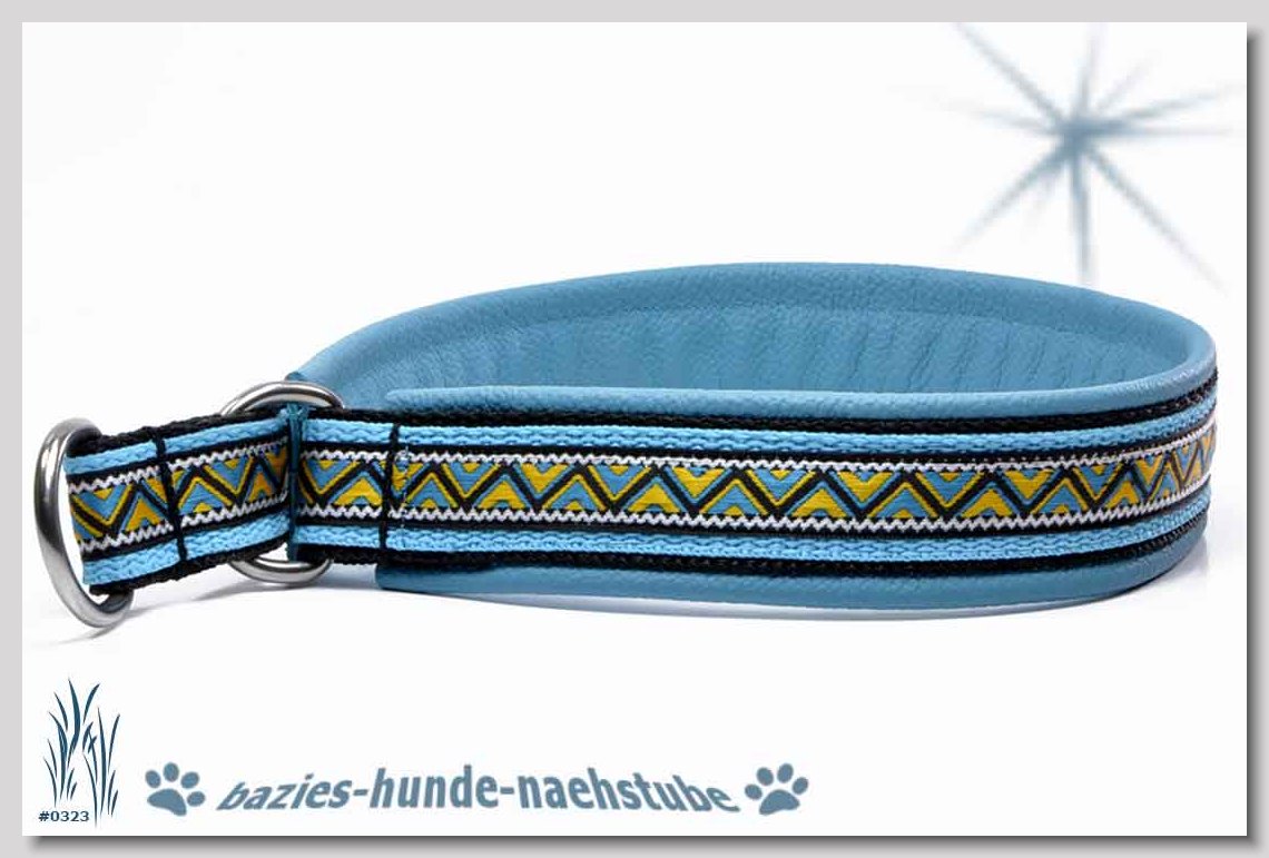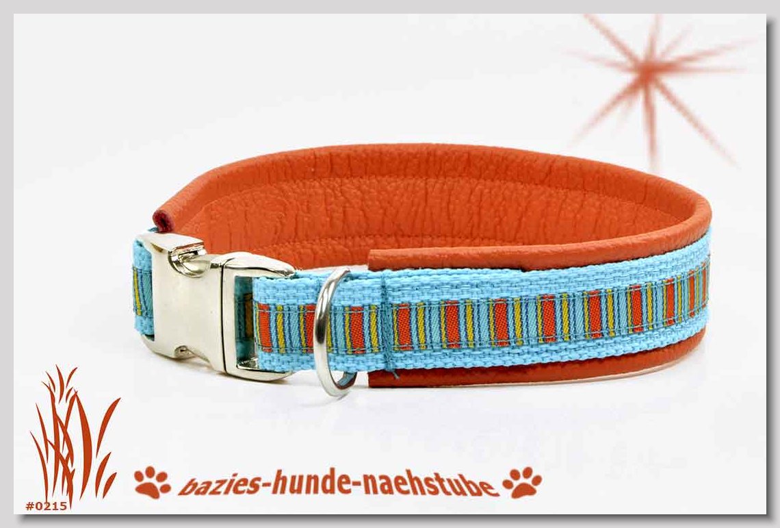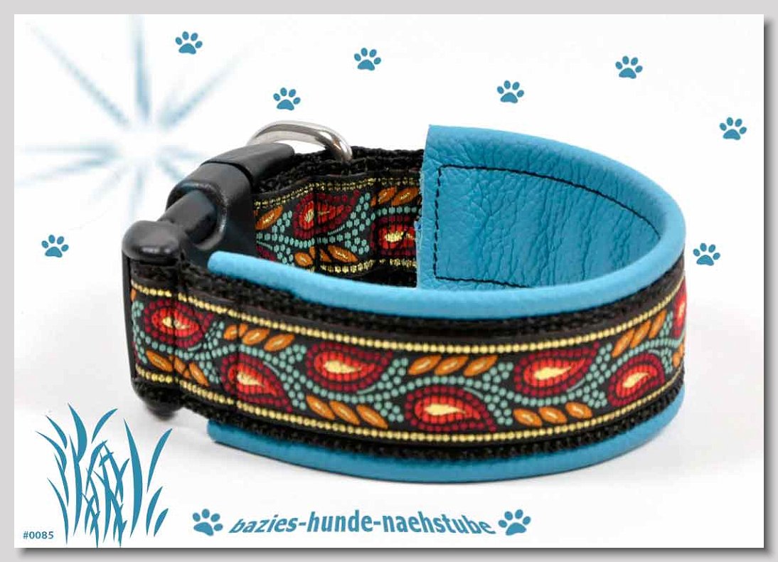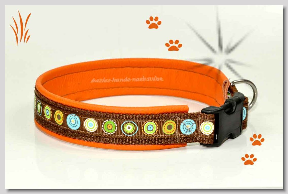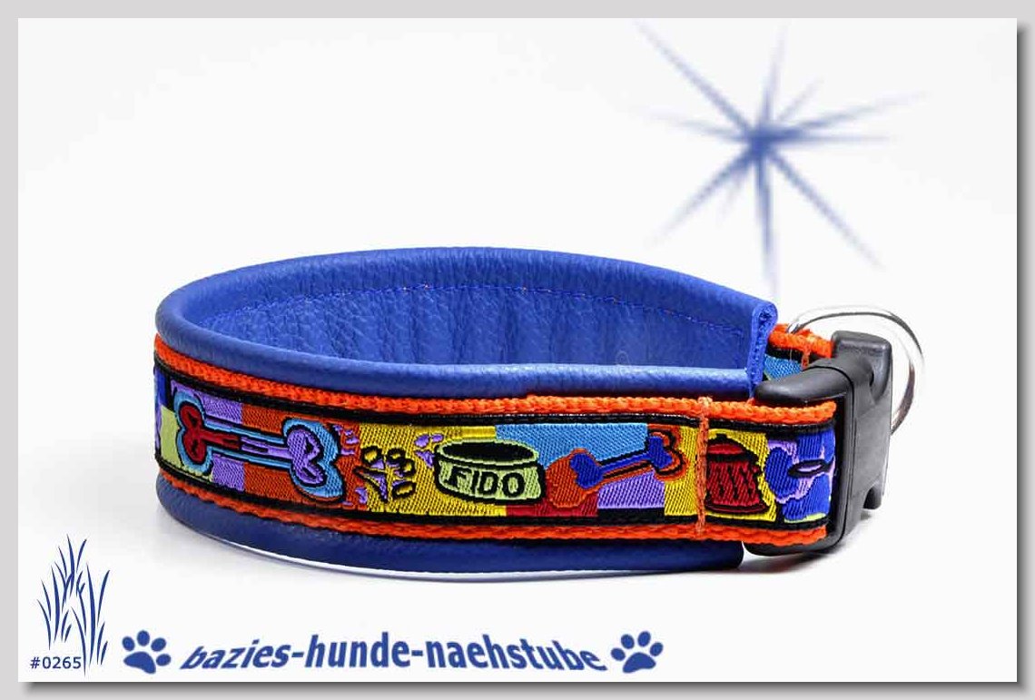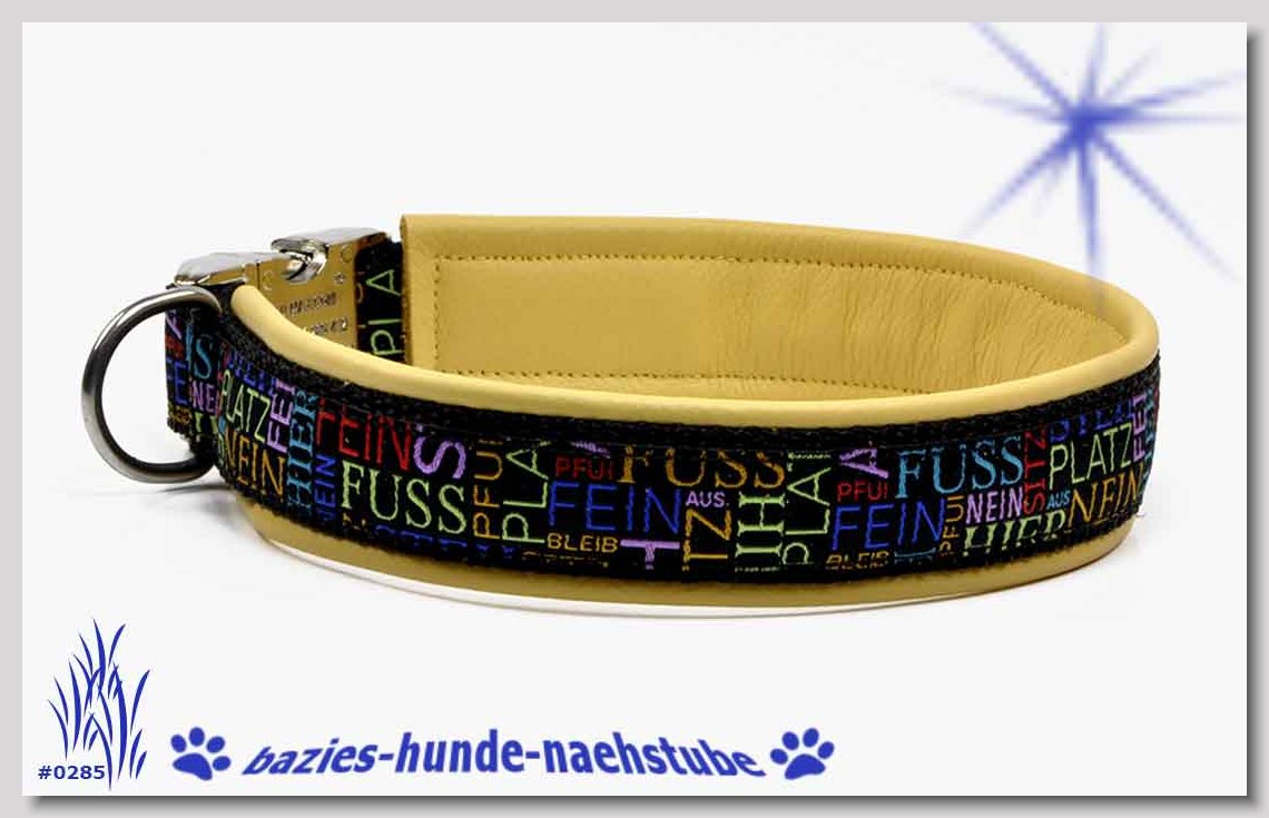 Art.Nr.: S1411-0061 Halsband "Indios beige" 35mm Gesamtbreite Webband wb2-166 Gurtband gb25-13 beige mit aufgenähtem Jeansstoff Leder L21 caramel ALU-Steckschliesser