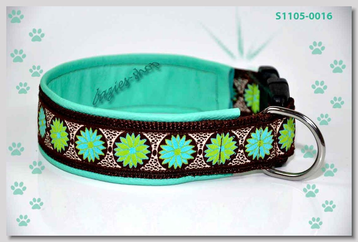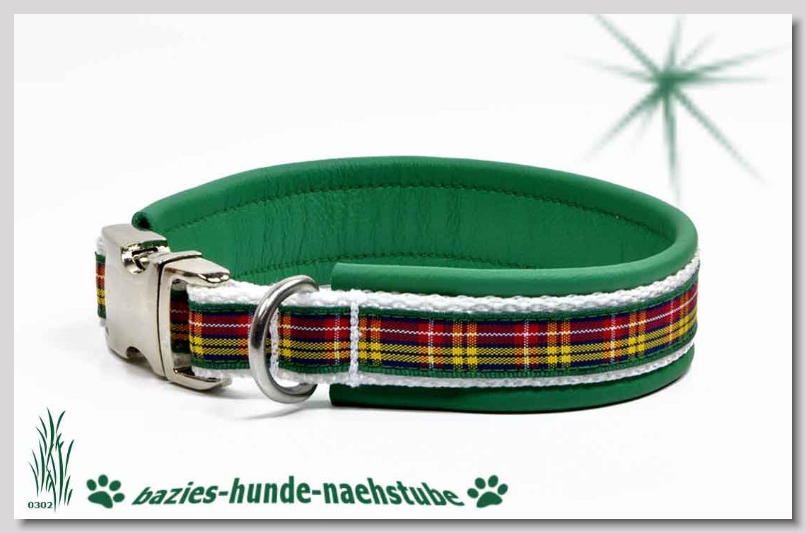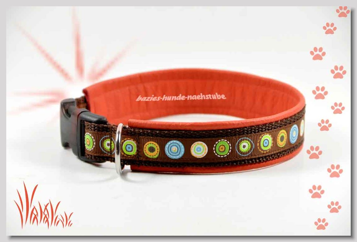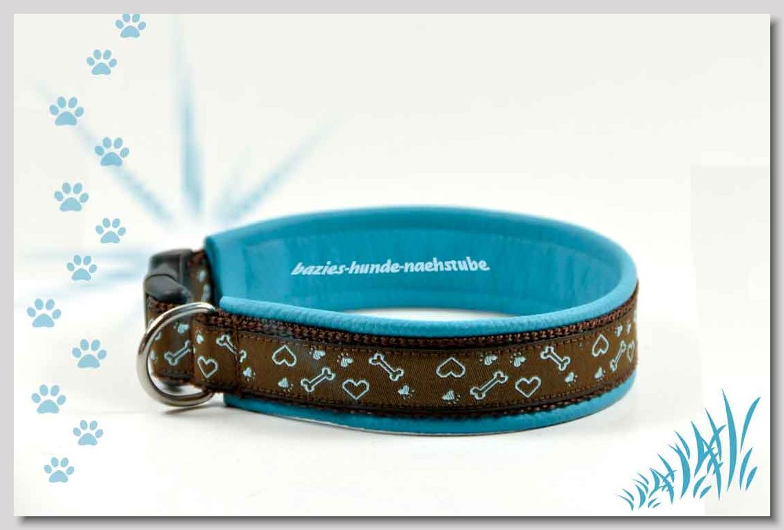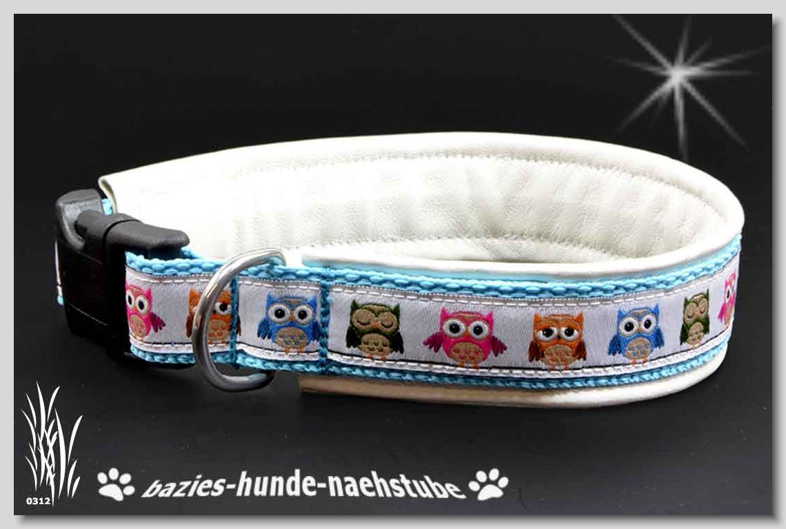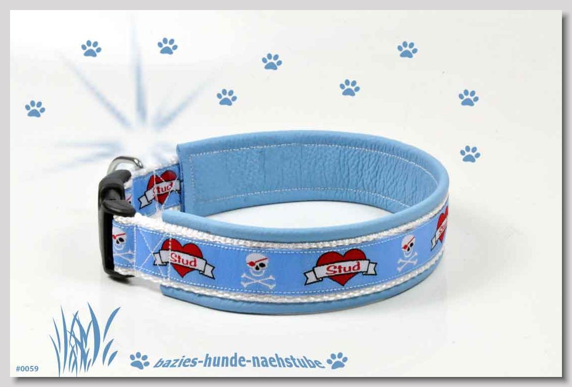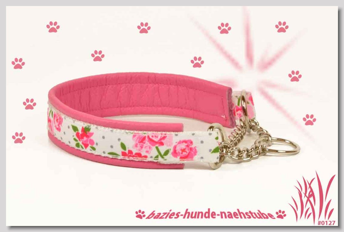 Art.Nr.: S1412-0072 (0332) Halsband im Design "Doggy-Crown pink" 35mm Gesamtbreite Webband wb2-195 Gurtband gb25-10 weiss Leder L07 brombeer Standard-Steckschliesser