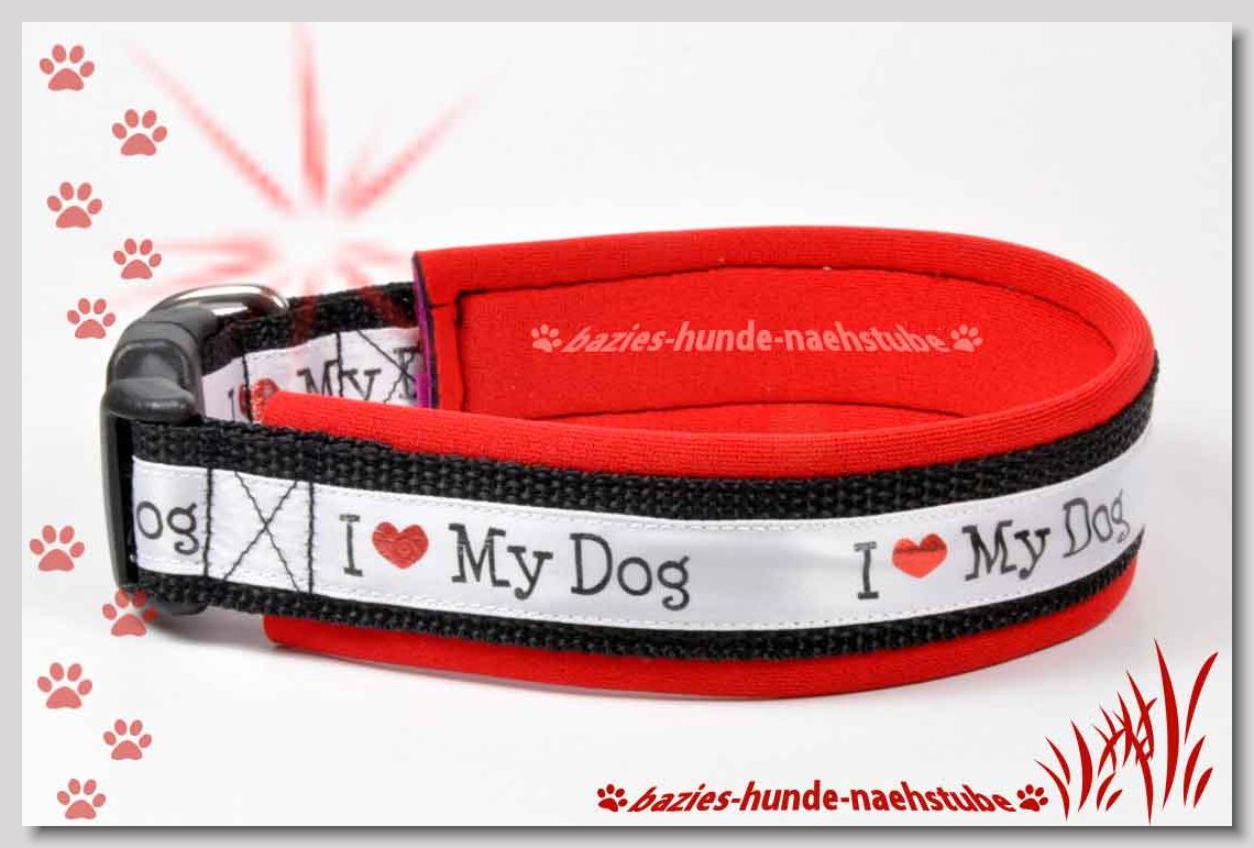 Art.Nr.: S1412-0071 (0334) Halsband im Design "Bling Bling Silberherz" 30mm Gesamtbreite Webband wbx Gurtband gb25-10 weiss Leder L01 schwarz ALU-Steckschliesser