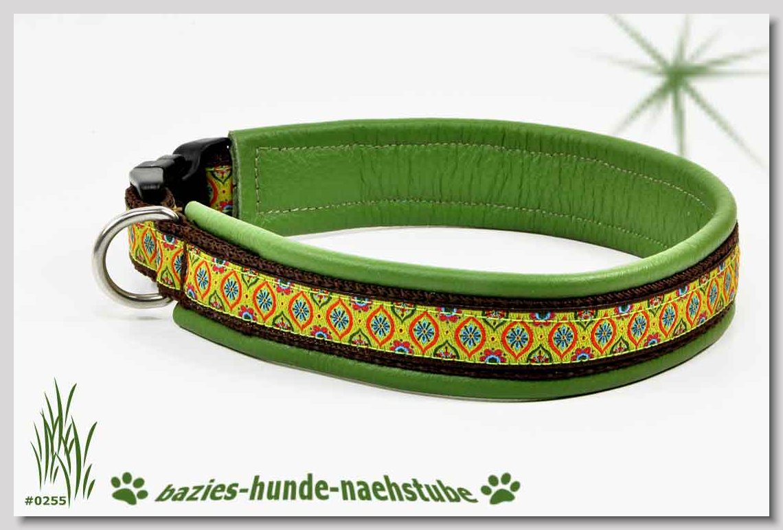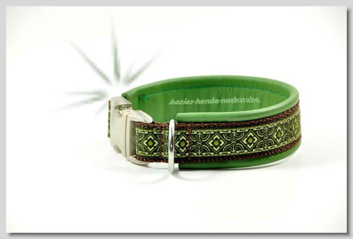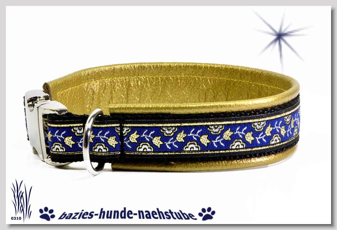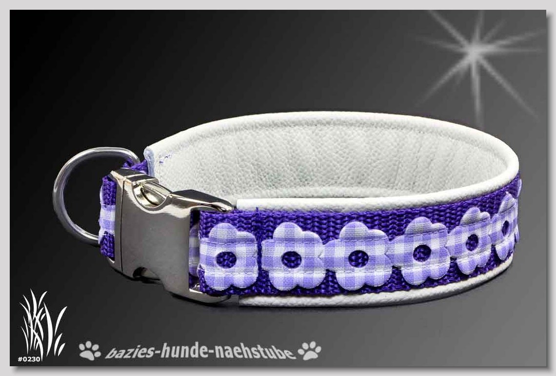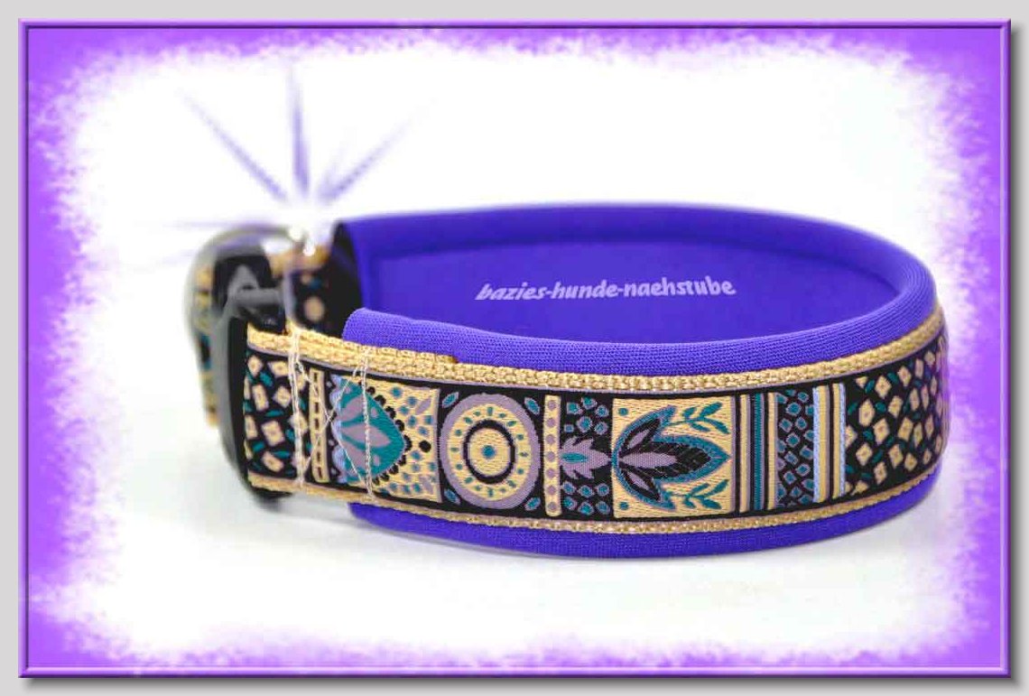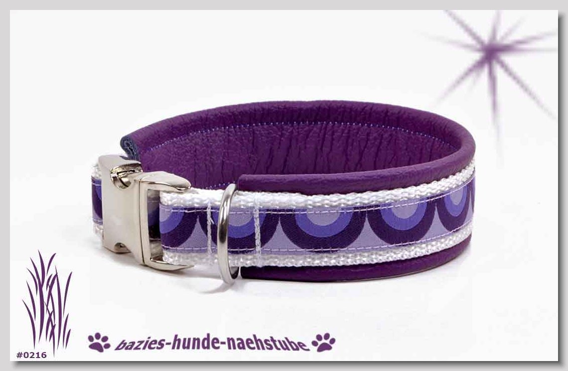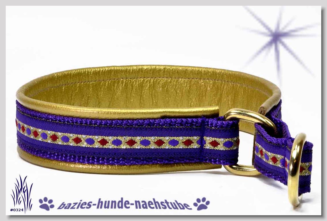 Art.Nr.: S1410-0057 Zugstopp-Halsband "Cabs and Diamonds" 30mm Gesamtbreite Webband wb2-183 Gurtband gb20-17 lila Leder L14 gold D-Ringe aus Messing