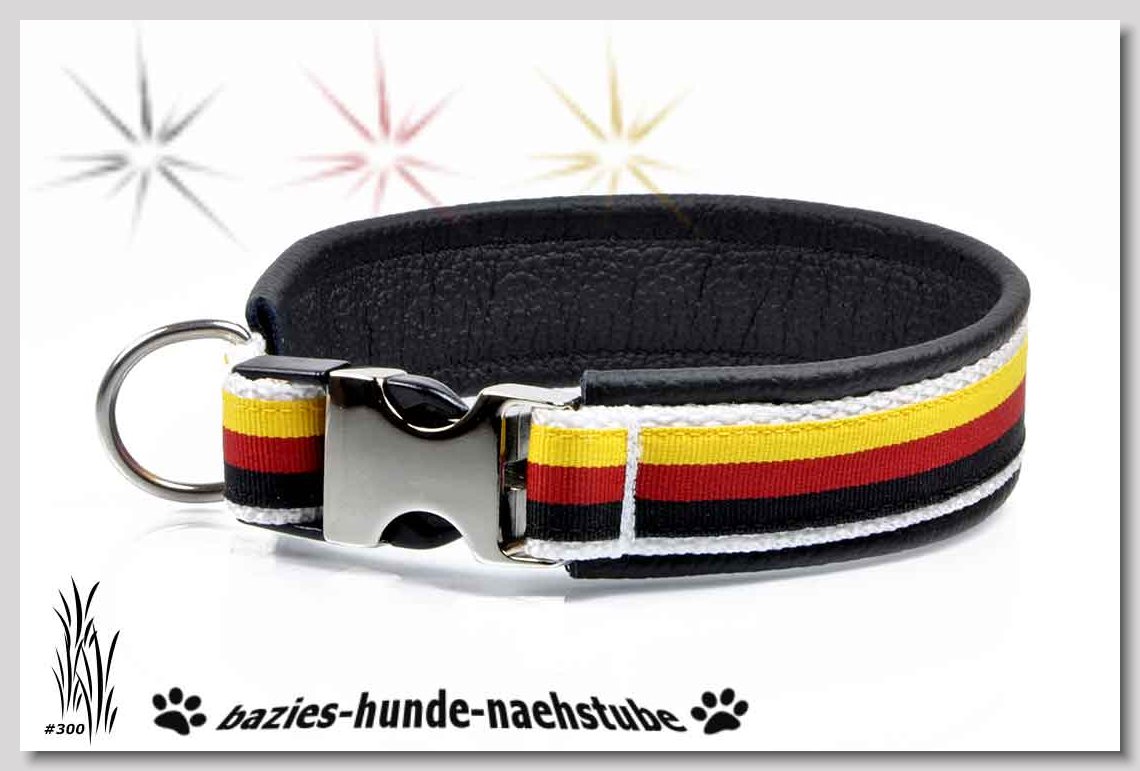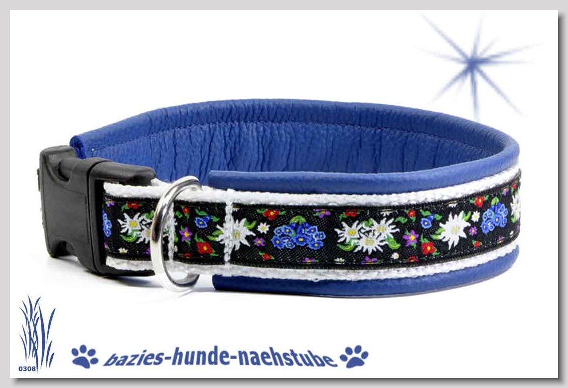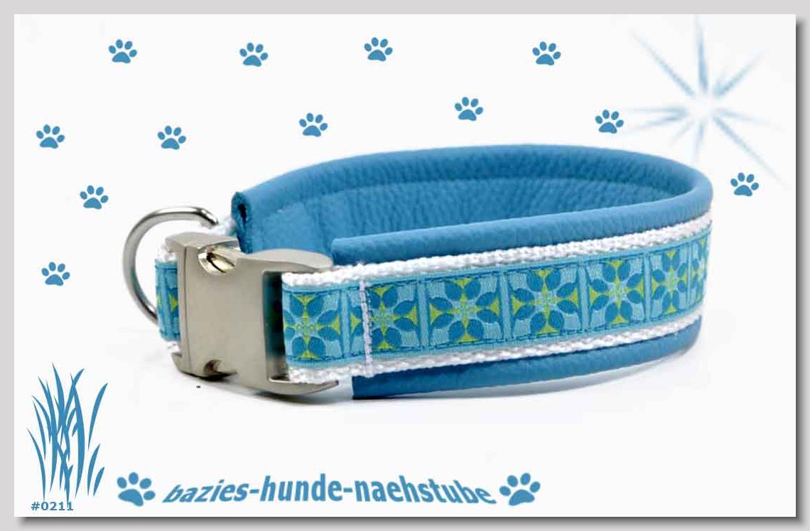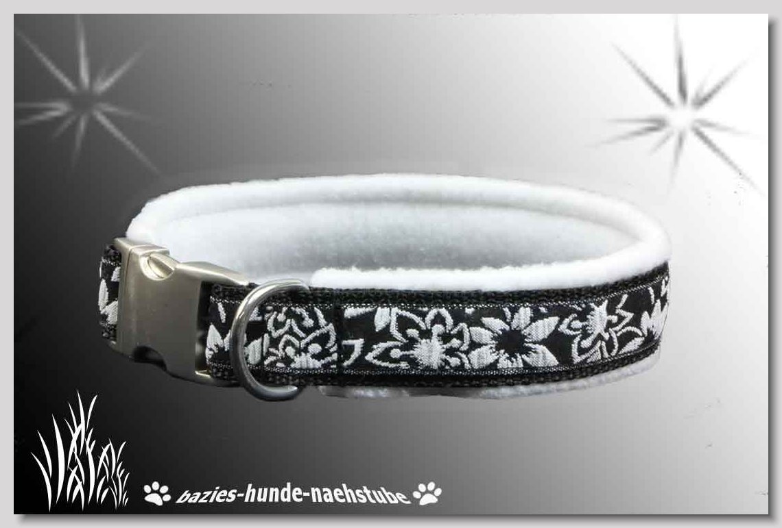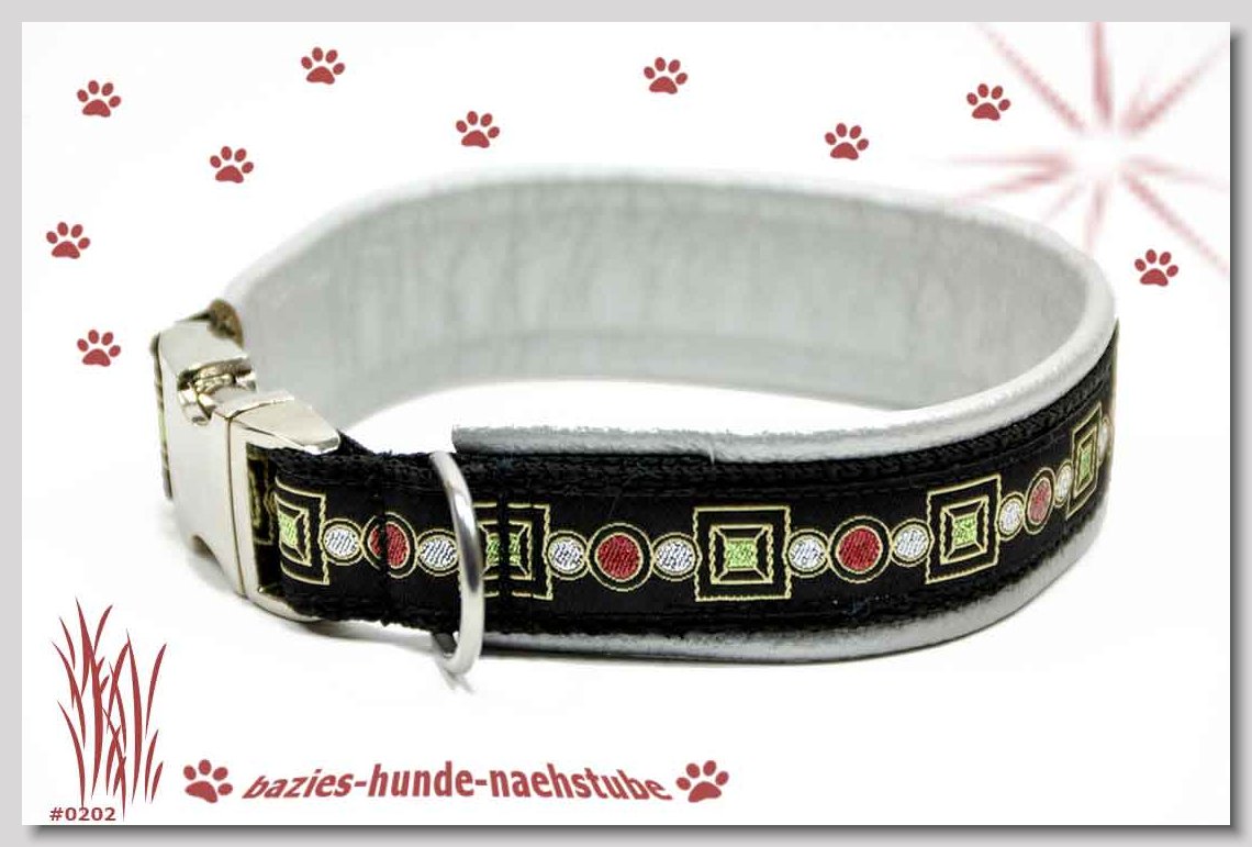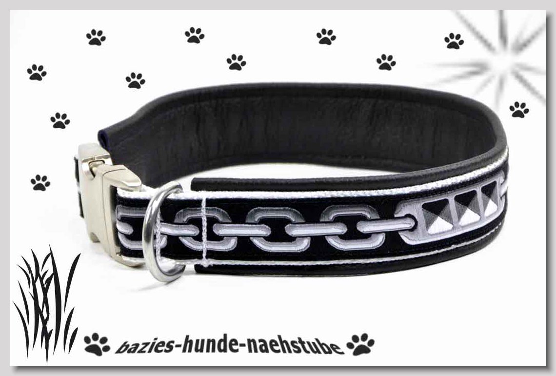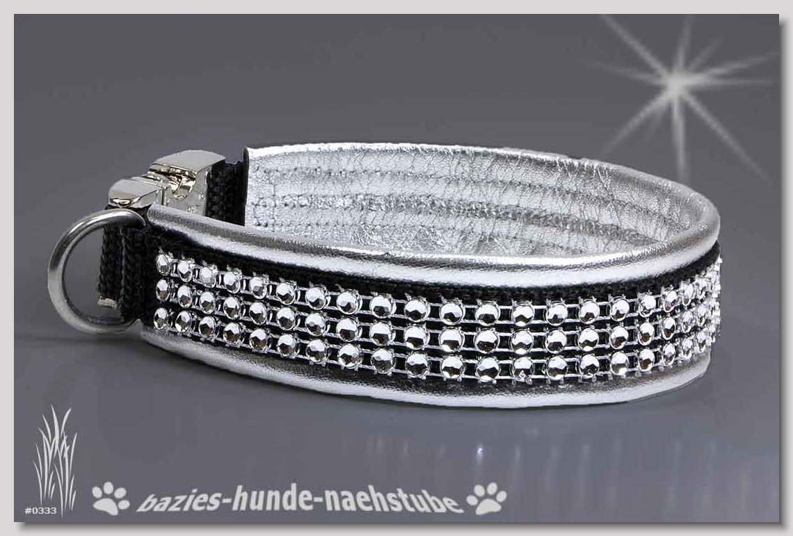 Art.Nr.: S1412-0068 (0333) Halsband im Design "Bling Bling silber" 30mm Gesamtbreite Webband wbx Gurtband gb15-08 schwarz Leder L31 silber ALU-Steckschliesser